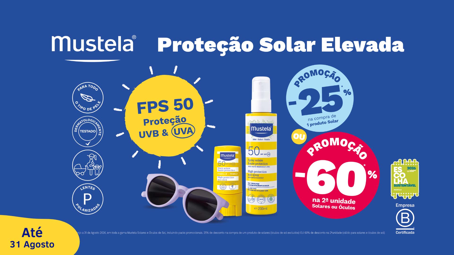 Mustela 25% Desconto num solar ou 60% na 2ª unidade (solar ou óculos)